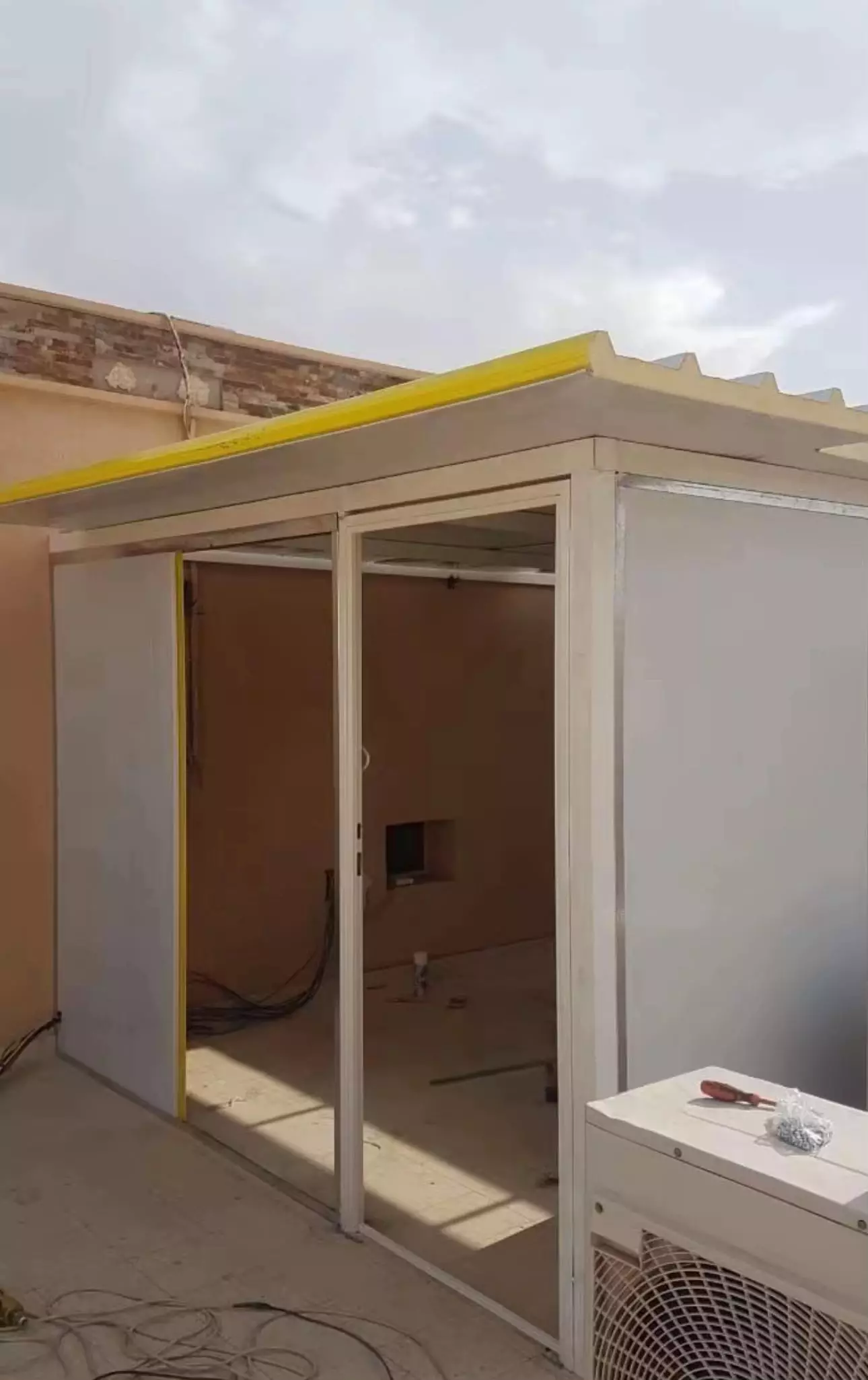 ساندويتش بانل هو عبارة عن هيكل يتكون من طبقتين خارجيّتين مصنوعتين من المعدن أو الألياف الزجاجية، وطبقة داخلية عازلة تفصل بينهما. يتميز هذا التصميم بقدرته على توفير عزل ممتاز، مما يجعله مثاليًا لمناخ الرياض الحار.